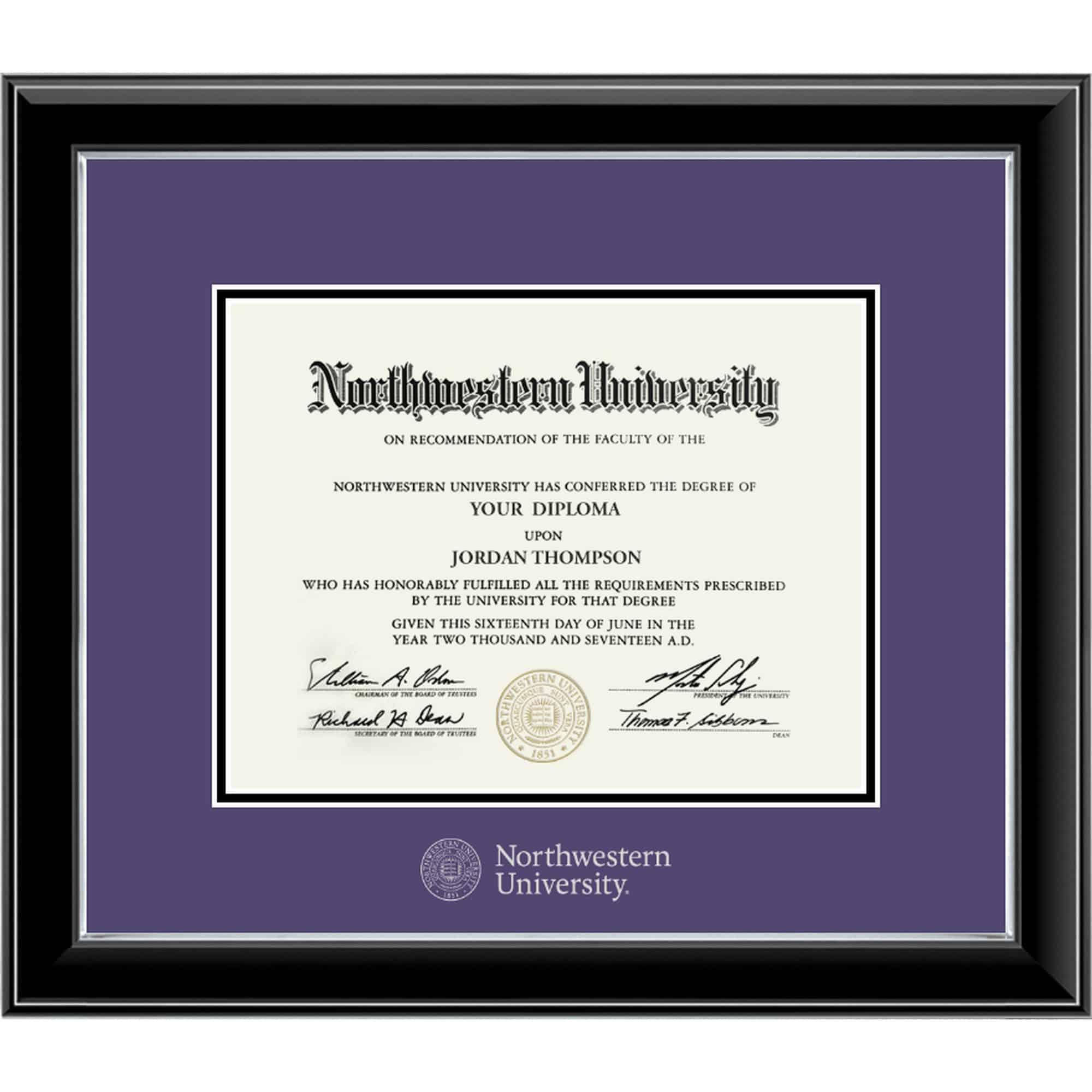Northwestern University Wildcats Onyx Double Matted Black Diploma Frame With Silver Accent & Silver Embossed Northwestern University Seal Design Main Matt In Purple